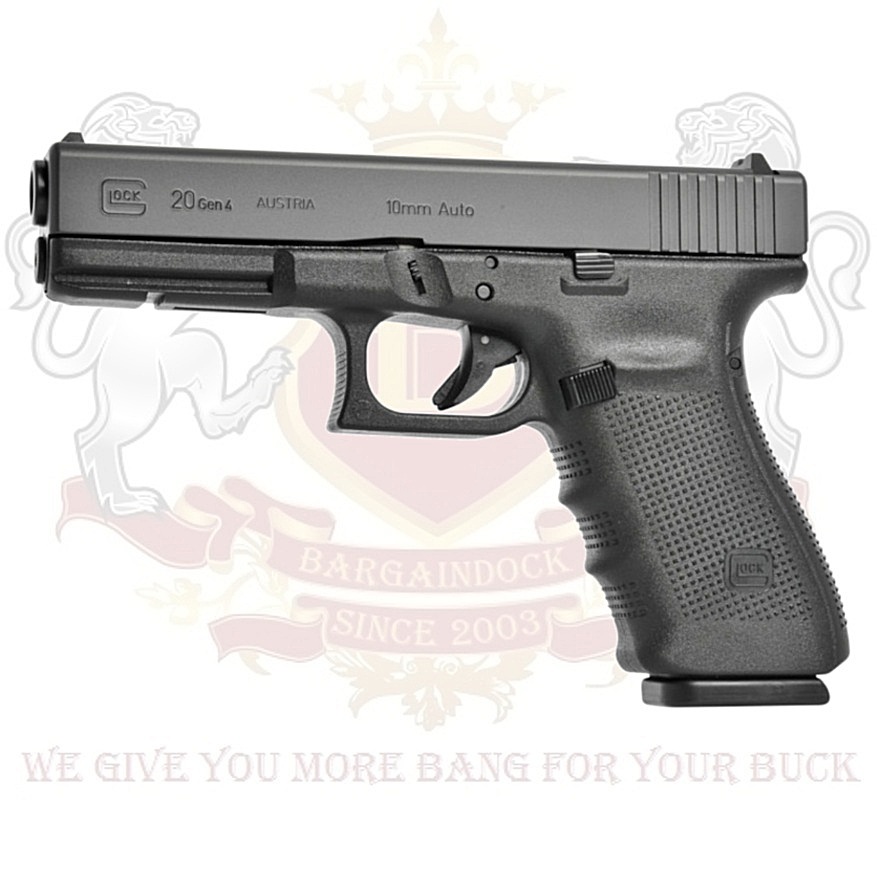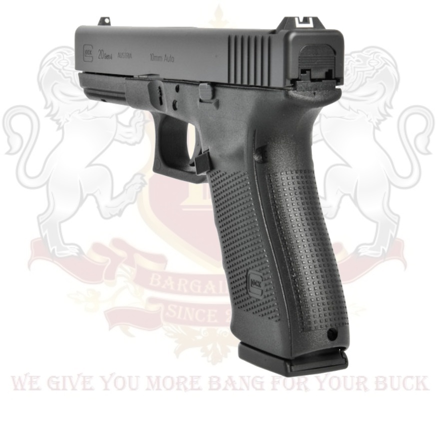 The GLOCK 20 Gen4 delivers formidable force downrange with high accuracy over long distance. The use of GLOCK hi-tech polymer considerably reduces felt recoil even in this heavy caliber. For the hunting community this 10 mm Auto is a reliable companion providing a safe and accurate finishing shot, even when hunting big game. The Modular back strap system makes it possible to instantly customize its grip to accommodate any hand size. The reversible magazine catch makes it ideal for left and right-handed shooters.