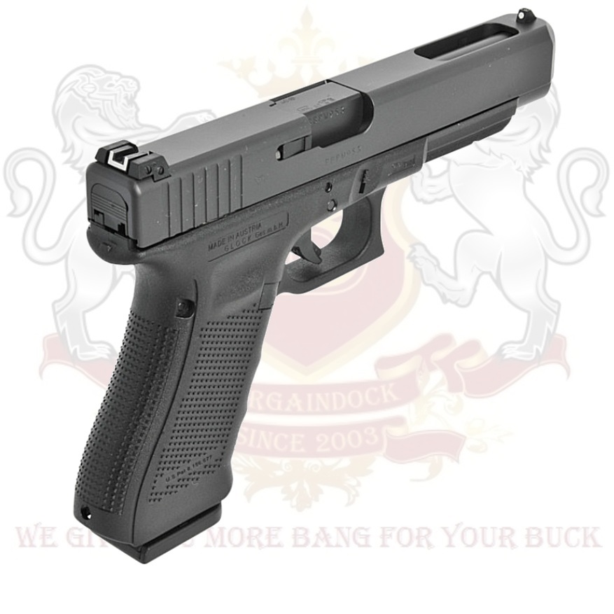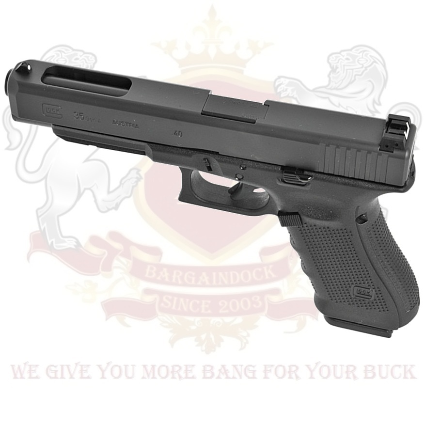 With its extended barrel and extra long line of sight, the GLOCK 35 Gen4 allows accurate hit patterns even during rapid firing. The Modular back strap system makes it possible to instantly customize its grip to accommodate any hand size. The reversible magazine catch makes it ideal for left and right-handed shooters.