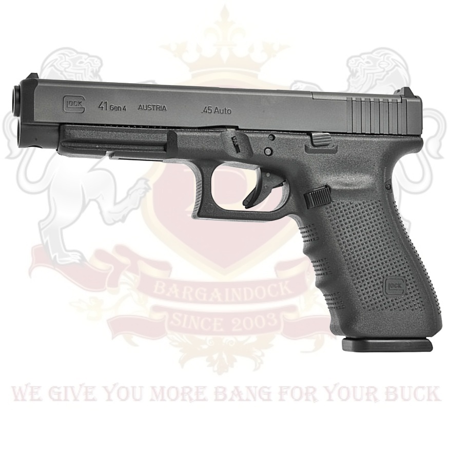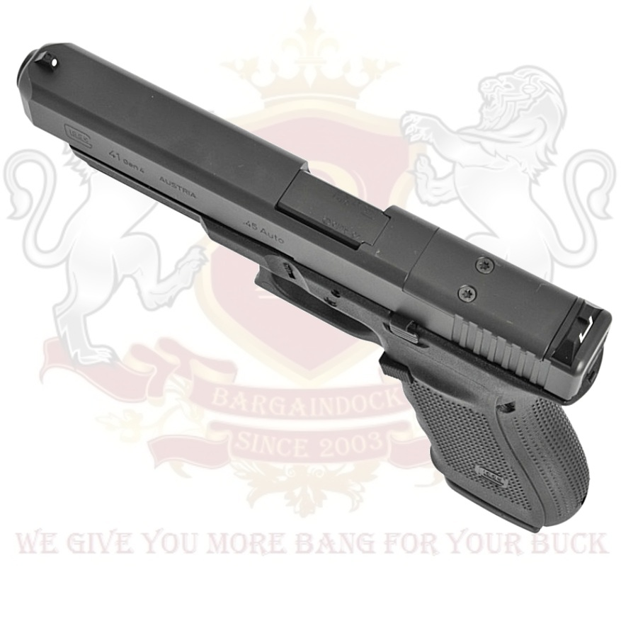The GLOCK 41 Gen4 is a 45 Auto caliber pistol designed to maximize sight radius while achieving perfect weight distribution and balance. The longer barrel and slide help to reduce muzzle flip and felt recoil whereas the MOS Configuration makes it easy to mount a miniature reflex sight on the pistol’s slide without the need for a new slide or separate mounting system.