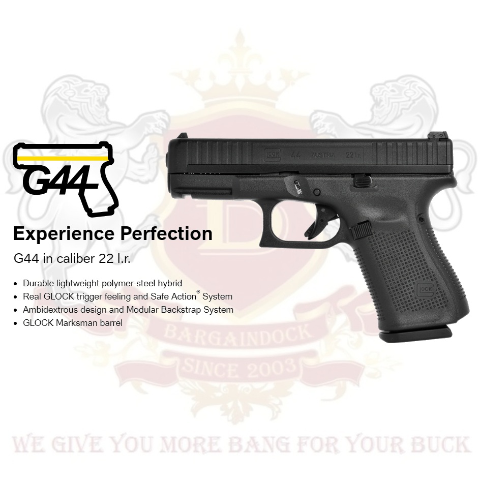 Made for shooters who value accuracy and reliability this Glock 44 is the ideal pistol to start or enhance your shooting experience. The innovative design of the hybrid steel-polymer slide chambered in 22 Long rifle provides a lightweight and low recoil functionality for optimal control. The G44 was thoroughly tested with a wide variety of ammunition to ensure maximum performance and redefine what small can do.
