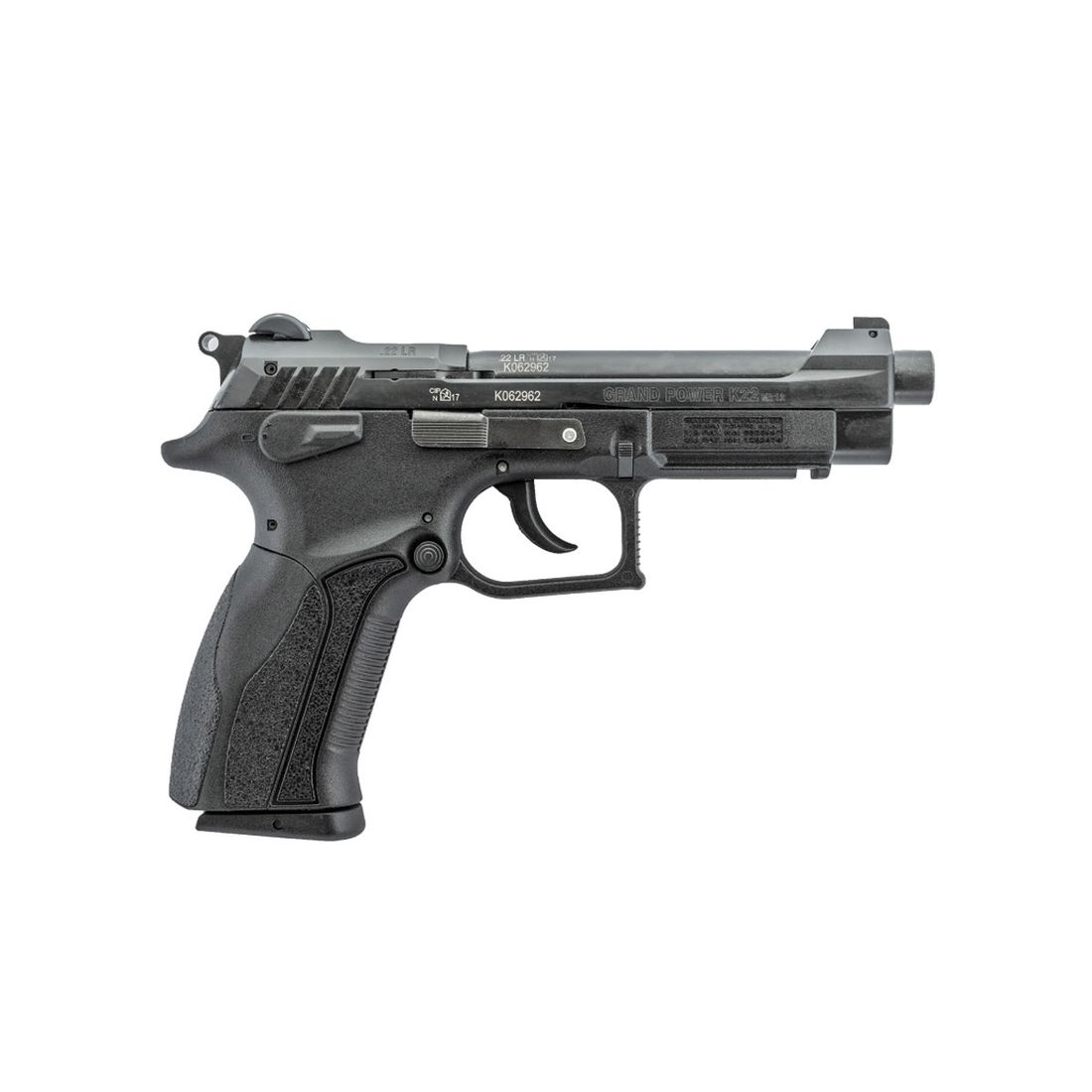 The K22S is a semi-automatic pistol chambered in a .22LR caliber with SA/DA trigger mechanism. Its advantage is an affordable caliber combined with the size and all features of a full-sized pistol. The Rifled barrel of the pistol is fixed on the steel insert and slide function is blow back. Newly designed steel slide enhances its durability and makes it stand out among other products offered in the same category.