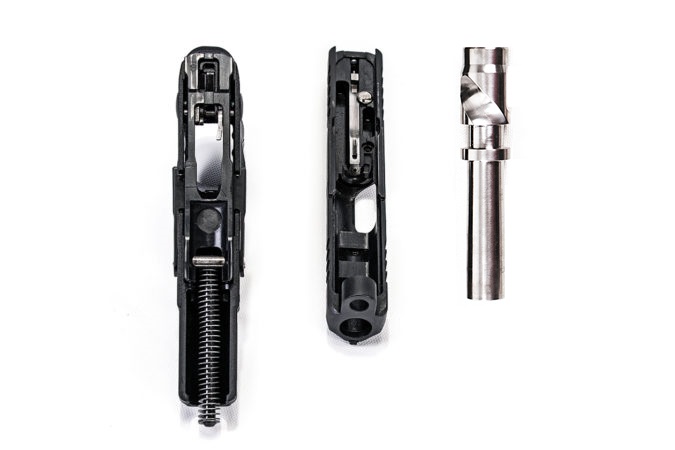 The Q1S design and action have some serious benefits not found on many other higher priced guns. Instead of a tilt-barrel (a modified Browning design), it uses a rotating barrel that disengages a lug on the barrel from a channel in the slide while the bore axis remains in the same orientation to the slide and frame which positions the barrel slightly lower in the frame, putting it closer to the shooter’s hand. This in turn reduces the recoil’s leverage on the shooter’s wrist and makes it easier to control muzzle flip. As a result, the sights get back on target faster, shooting the gun is easier and accuracy is significantly increased compared to many other guns of similar size and caliber.