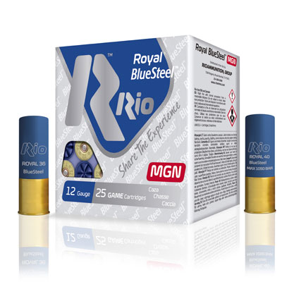 The Rio Royal Bluesteel Magnum has consistent patterns in a safer, cleaner and more efficient cartridge that performs perfectly regardless of the environmental conditions and combines the knockdown power and range of a magnum load with a modern non-toxic construction. Perfect for hunters looking to achieve maximum performance and maximize killing power under adverse hunting conditions.