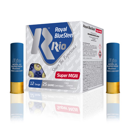 The Rio Royal Bluesteel Super Magnum has consistent patterns in a safer, cleaner and more efficient cartridge that performs perfectly regardless of the environmental conditions and combines the knockdown power and range of a Super Magnum load with a modern non-toxic construction. Perfect for hunters looking to achieve maximum performance and maximize killing power under adverse hunting conditions.