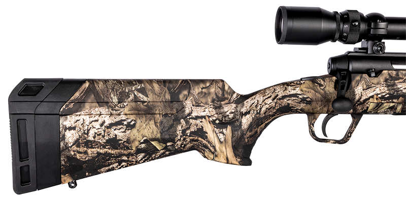 Make a statement at camp and keep a low profile in the field with the AXIS XP Camo. At just 6.5 pounds, this lightweight powerhouse packs serious features including a button-rifled, matte blued, 22-inch carbon steel barrel topped by a factory-mounted, boresighted Weaver® 3-9x40mm scope. A detachable box magazine comes standard, as does a stylish yet practical design highlighted by sleek contours with a textured fore-end and grip.